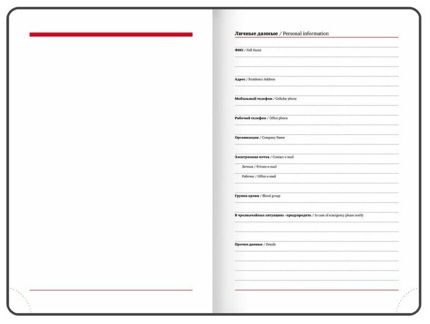 | Особенности | календарь / перфорация уголков / справочная информация / ляссе / прошивка по периметру обложки / закругленные углы |
