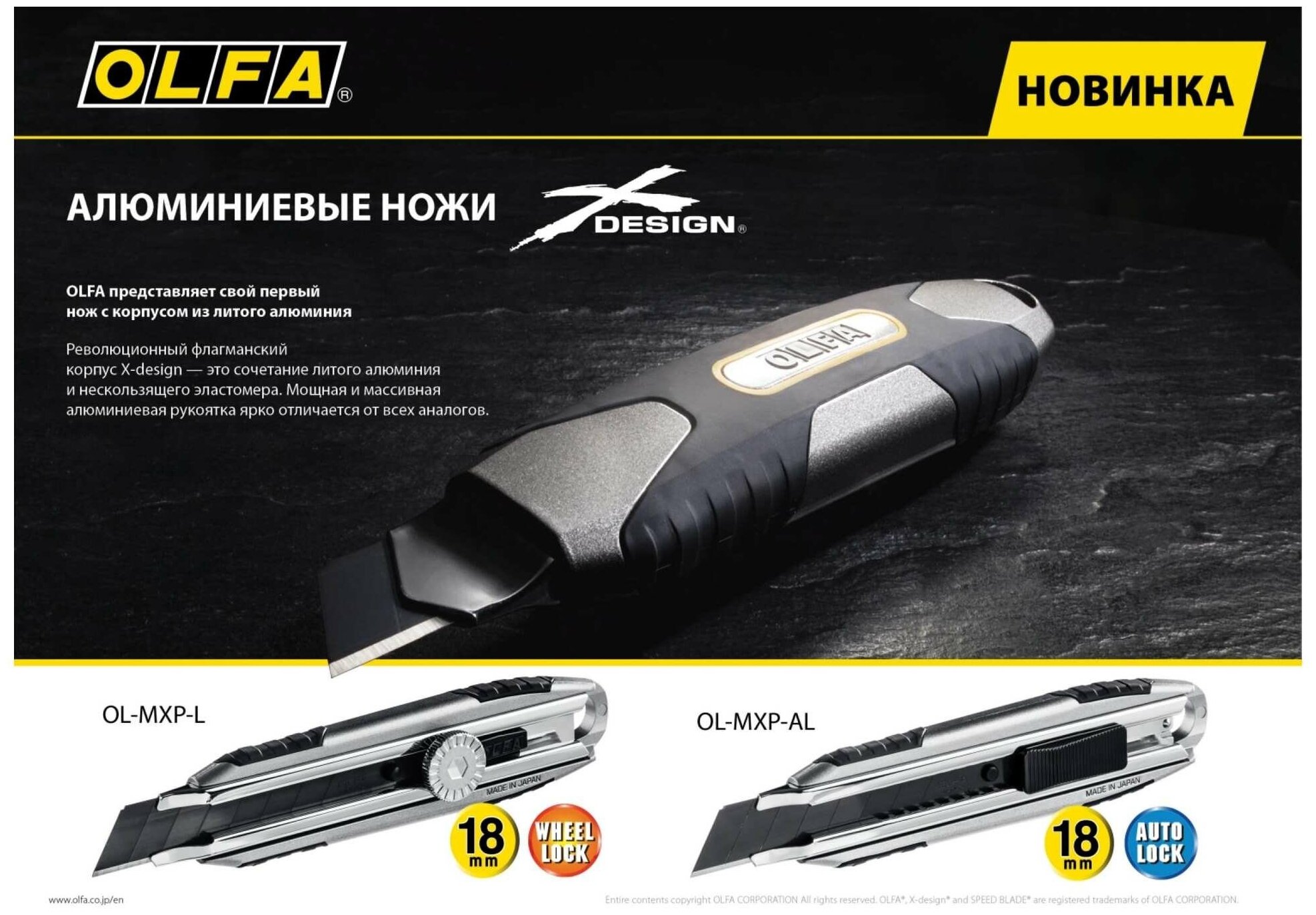 Нож Olfa OL-MXP-AL, X-design, цельная алюминиевая рукоятка, AUTOLOCK фиксатор, 18 мм информация: