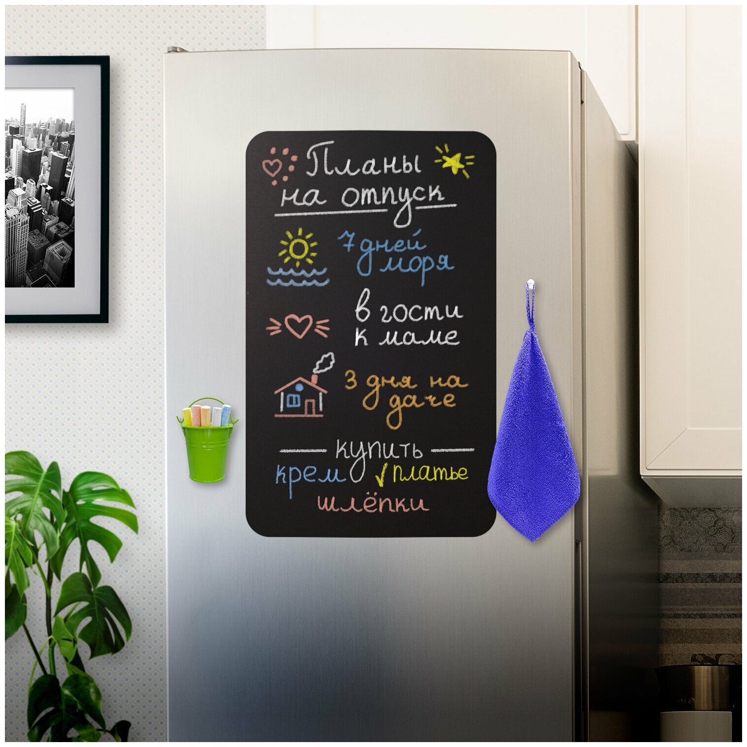 Доска на холодильник магнитно-меловая 58×36 см с мелками, магнитом и салфеткой, BRAUBERG, 237845