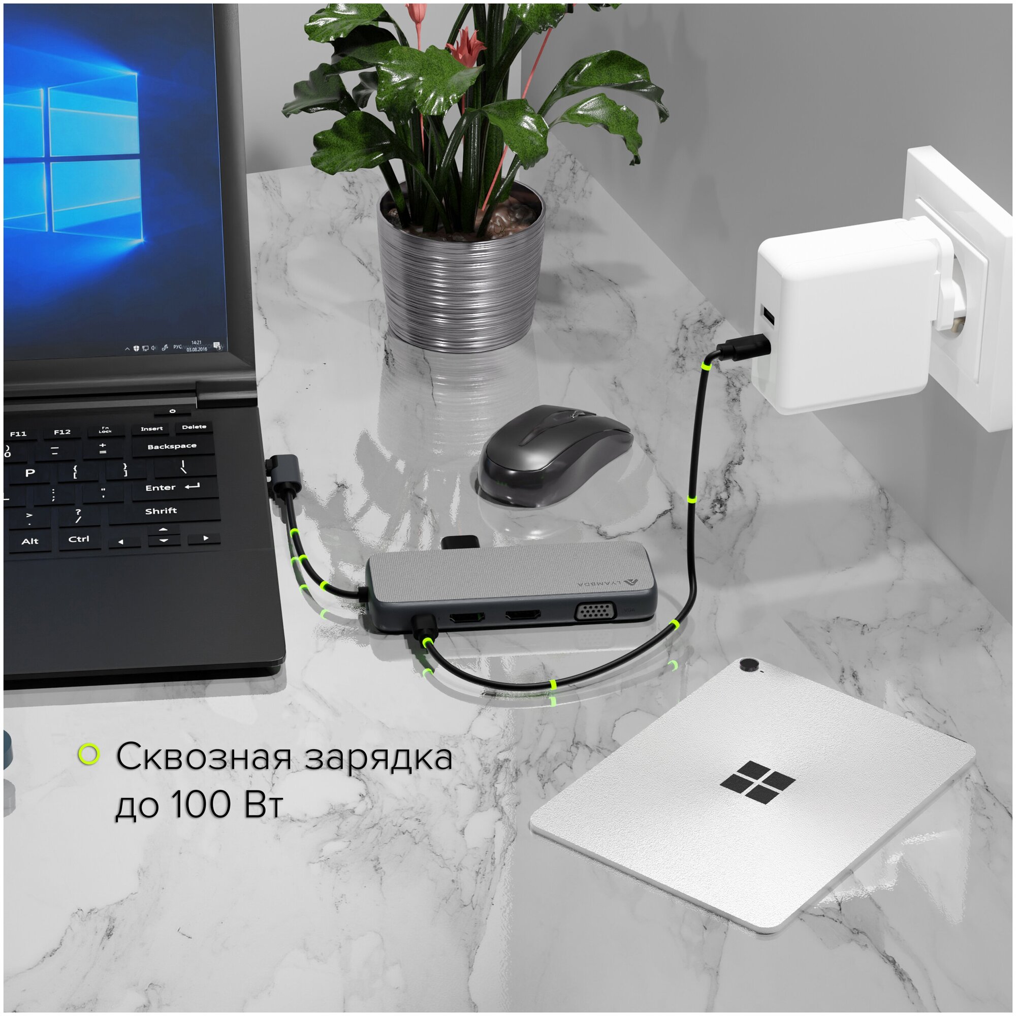 10 цен на Хаб (разветвитель) LYAMBDA Type-C 9 в 1 Multimedia DUAL 4K/USB/PD Hub, Slim Aluminum LC130 Gray