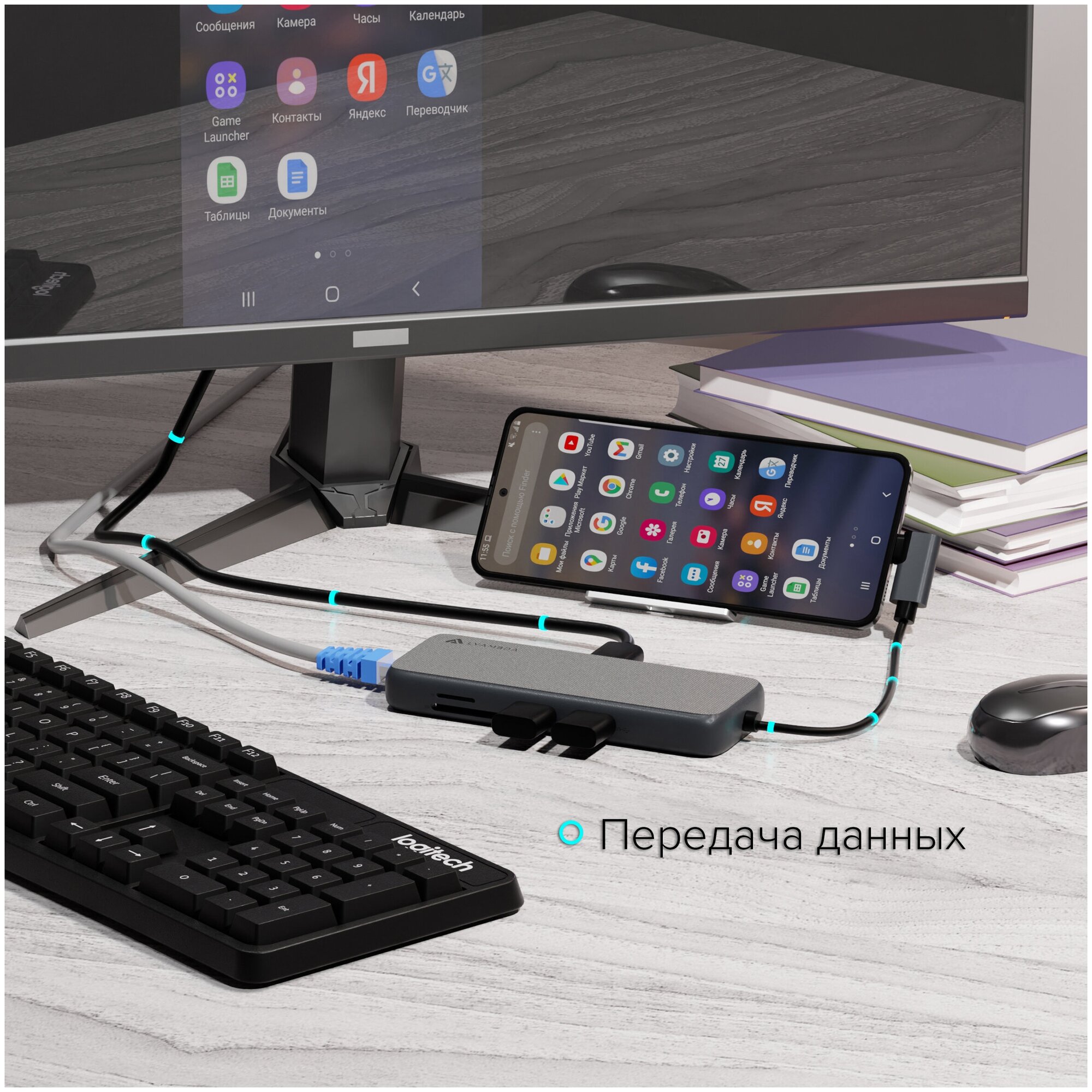 Отзывы на Хаб (разветвитель) LYAMBDA Type-C 9 в 1 Multimedia DUAL 4K/USB/PD Hub, Slim Aluminum LC130 Gray