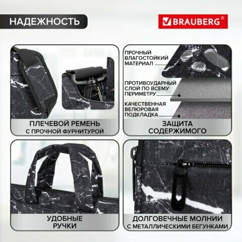Отзывы на 270835, Сумка-портфель BRAUBERG "Marble" с отделением для ноутбука 13-14", 3 кармана, 26х36х3 см, 270835
