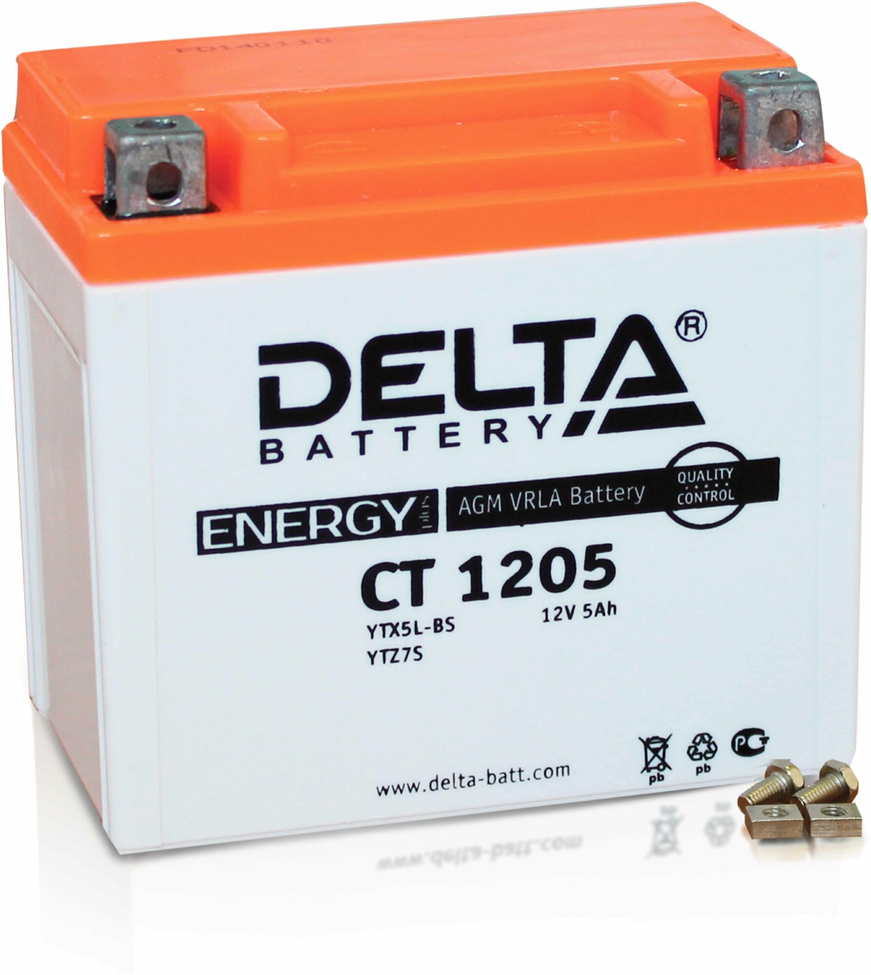 Delta CT 1205 Мото аккумулятор стартерный для мотоцикла, квадроцикла, скутера AGM 12V (YTX5L-BS, YT5L-BS, YTZ7S)