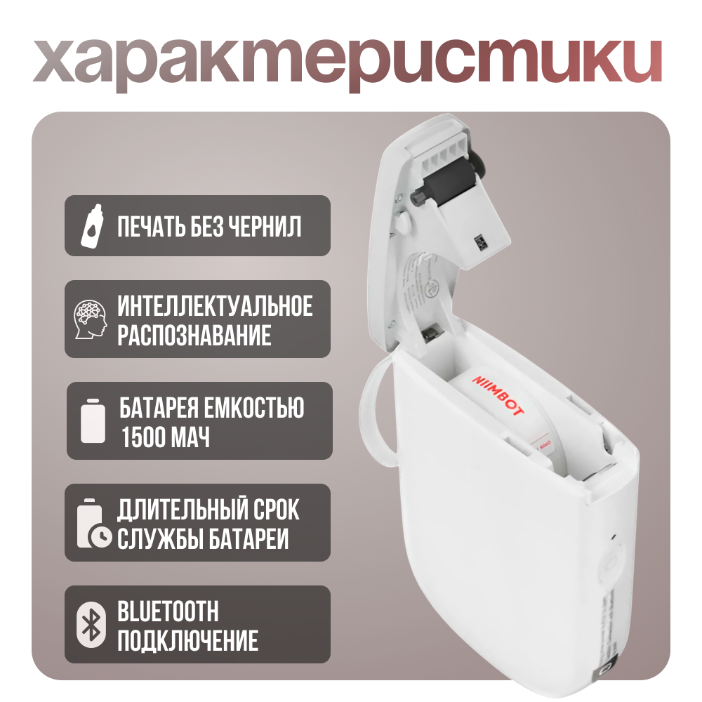 Термопринтер NIIMBOT D11 (1500мА/ч) белый. Печать: Наклейки, стикеры, этикетки, ценники, бирки, QR коды, честный знак.
