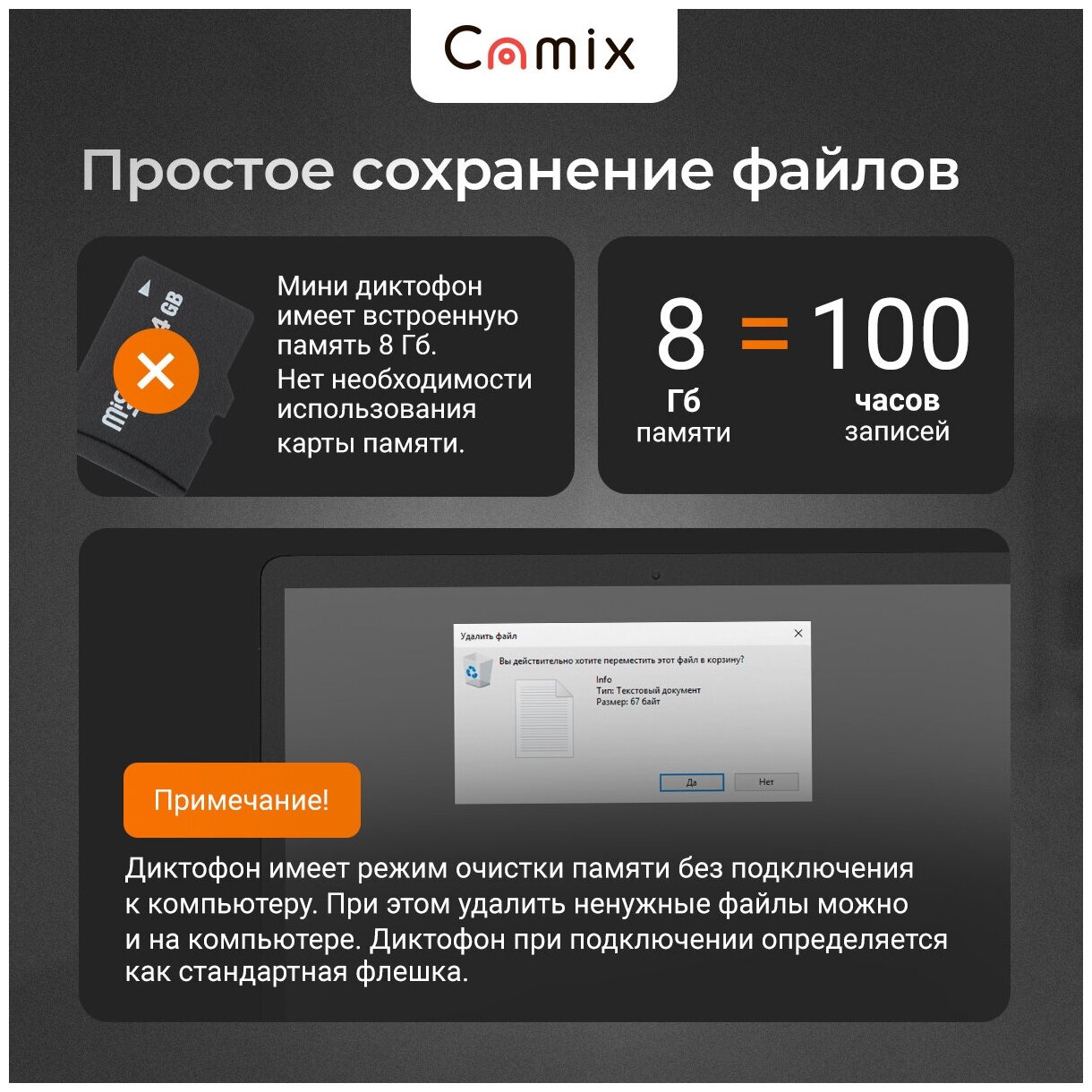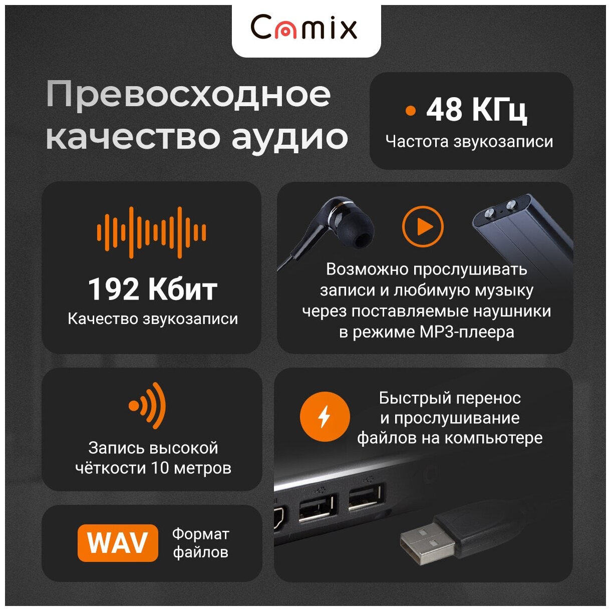 Диктофон мини Camix VR658 8Гб скрытый с датчиком звука и записью до 60 часов, маленький микро MP3 плеер с наушниками и жучок прослушка в машину информация: