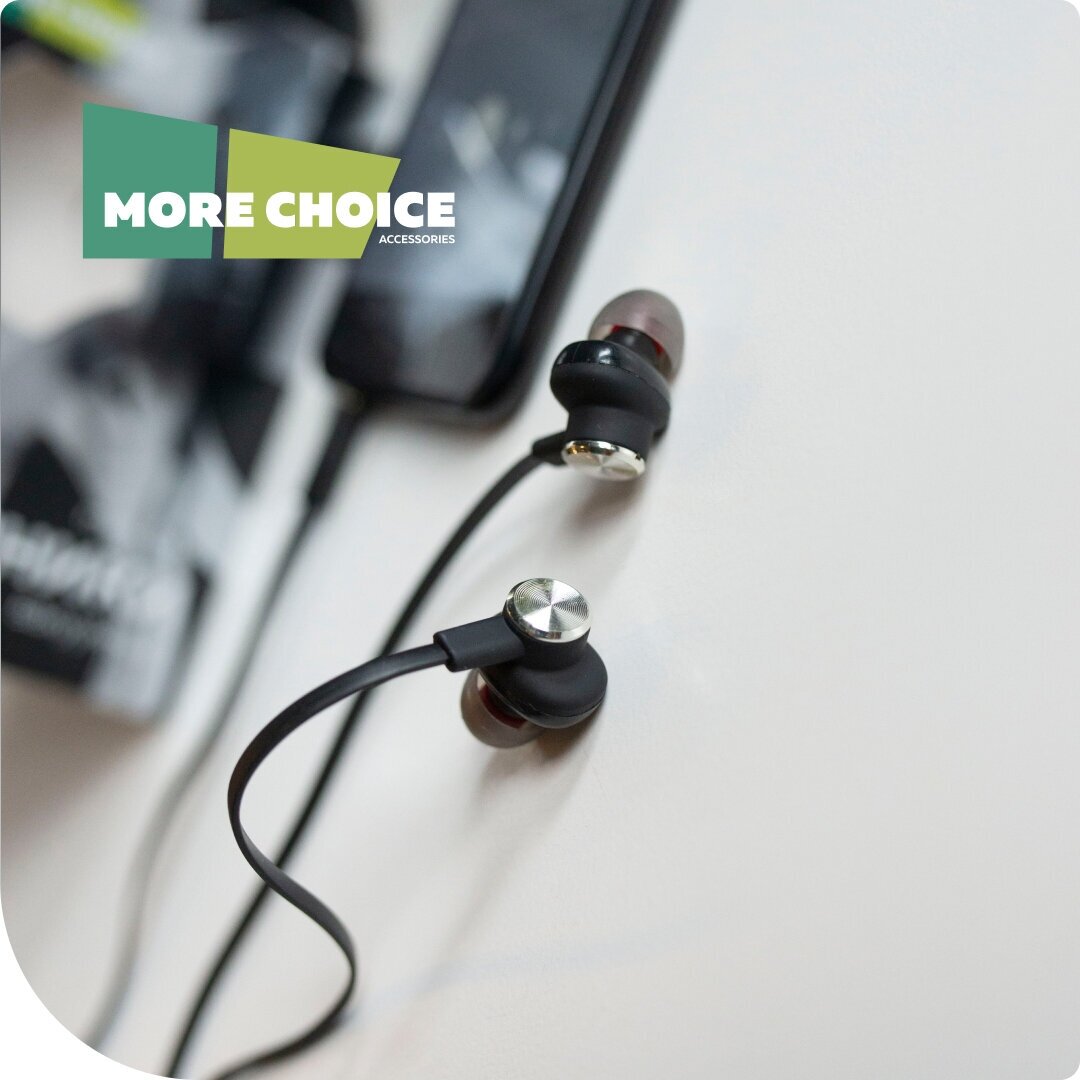 Наушники MORE CHOICE P42 проводные, вакуумные, 1,2м, черный/серебро