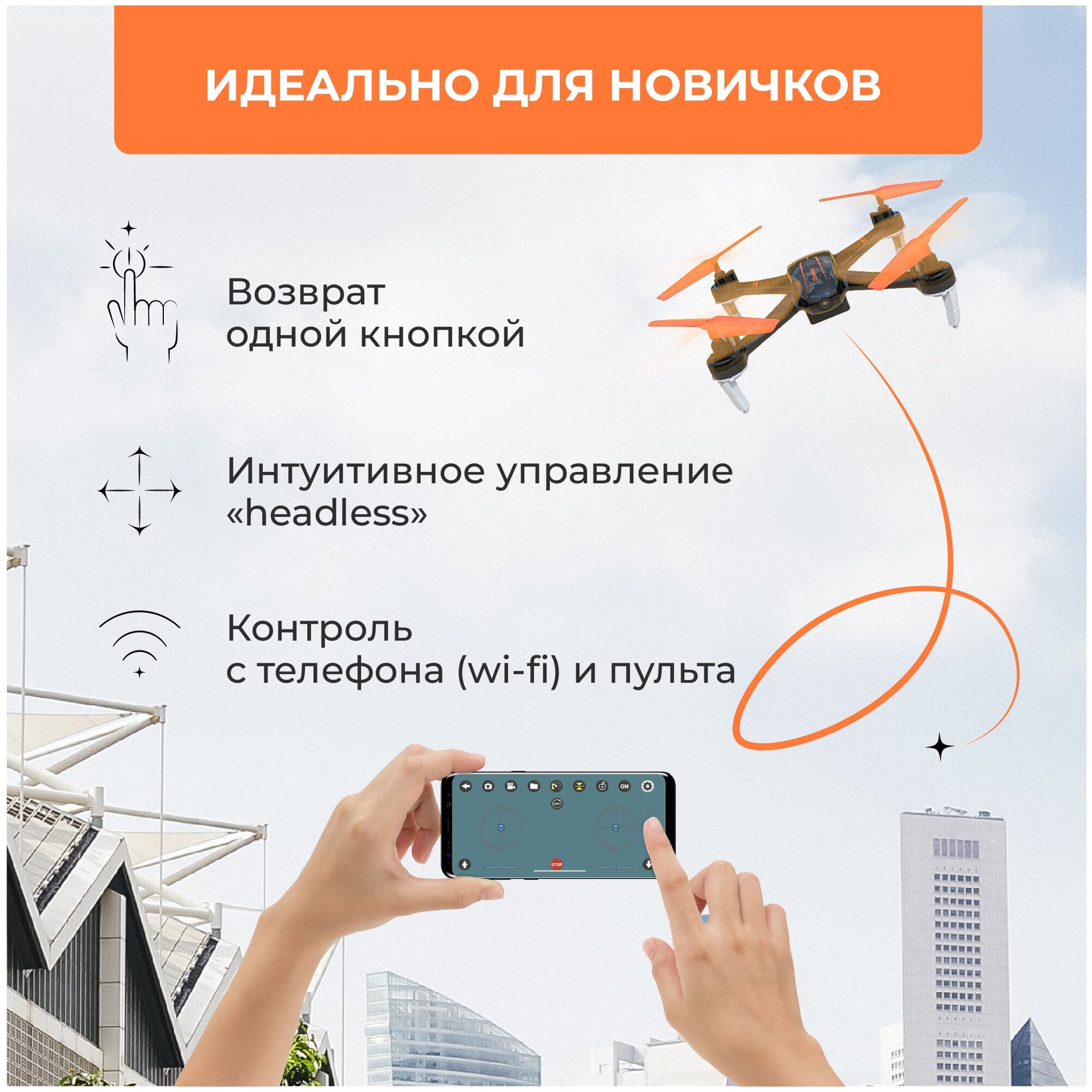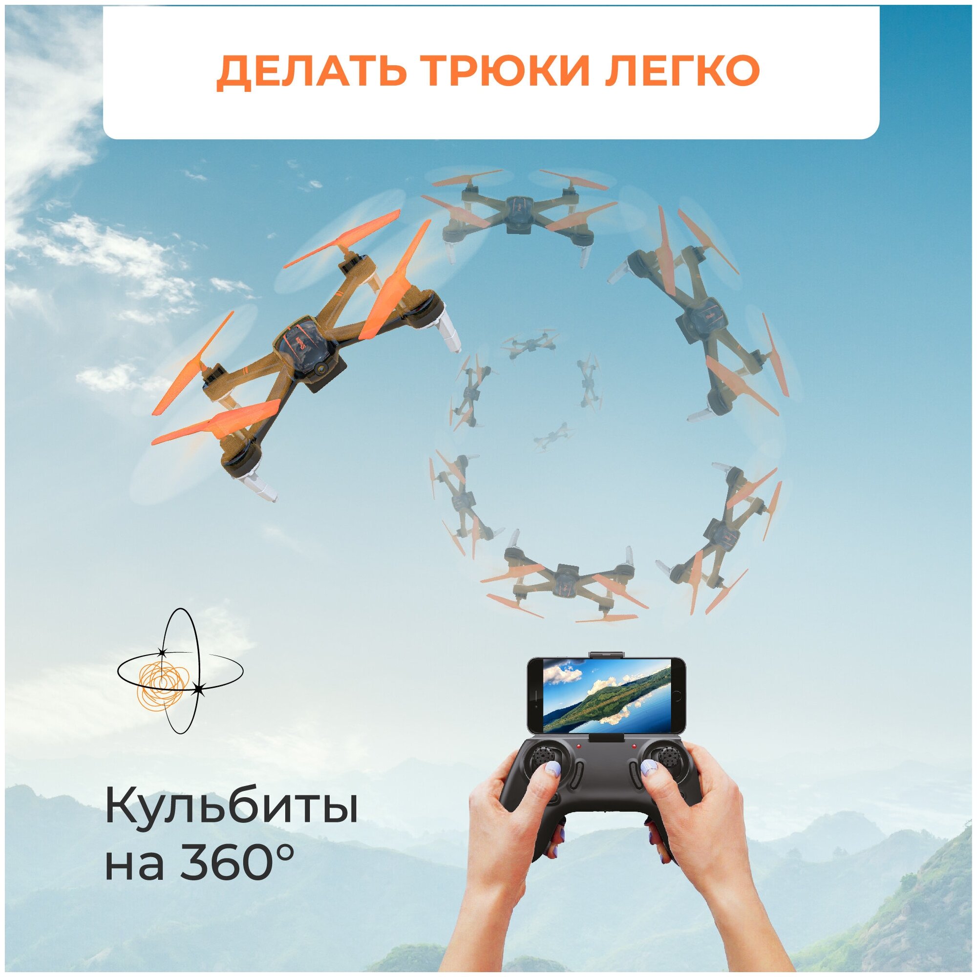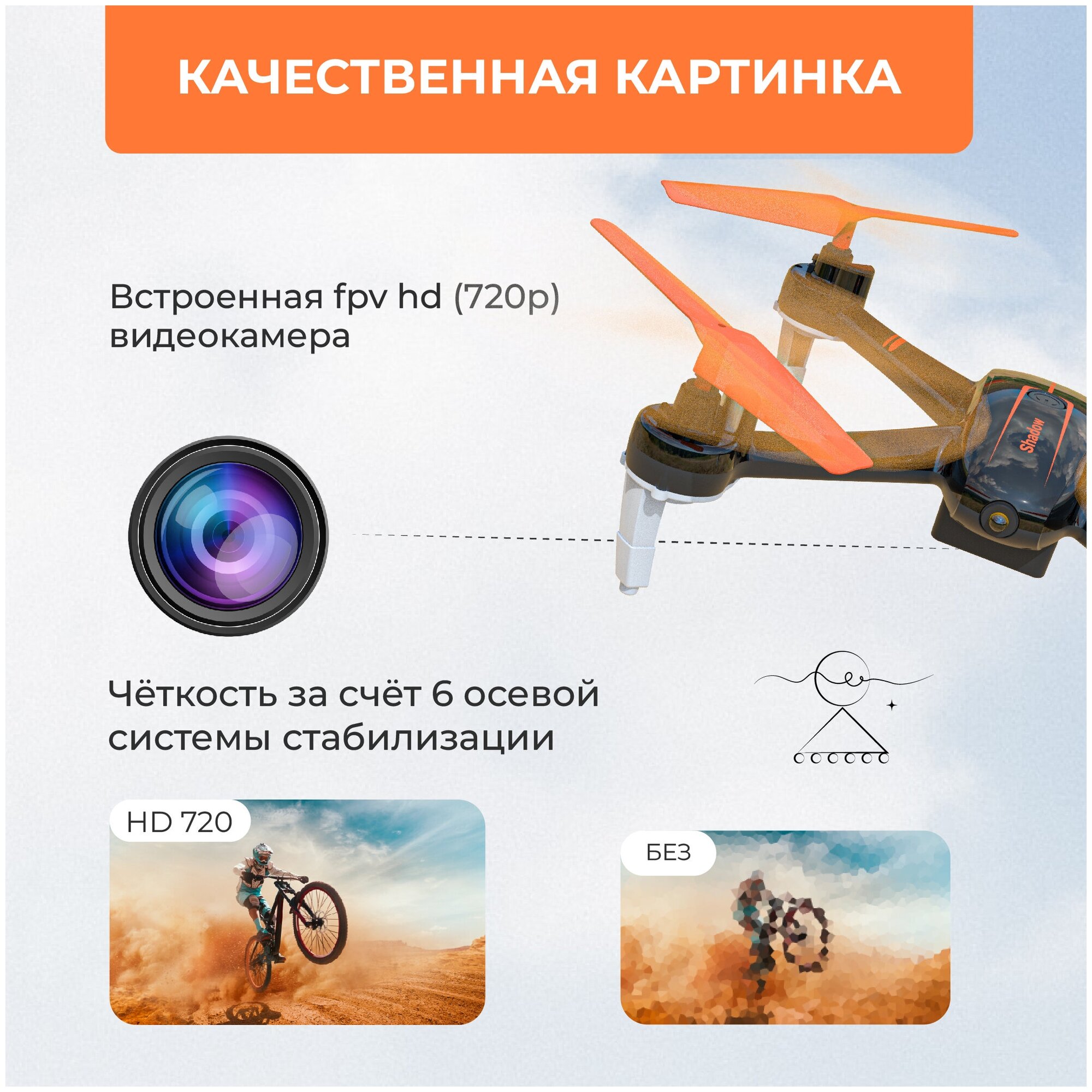 Квадрокоптер Hiper WIND FPV 480р WiFi ПДУ оранжевыйчерный