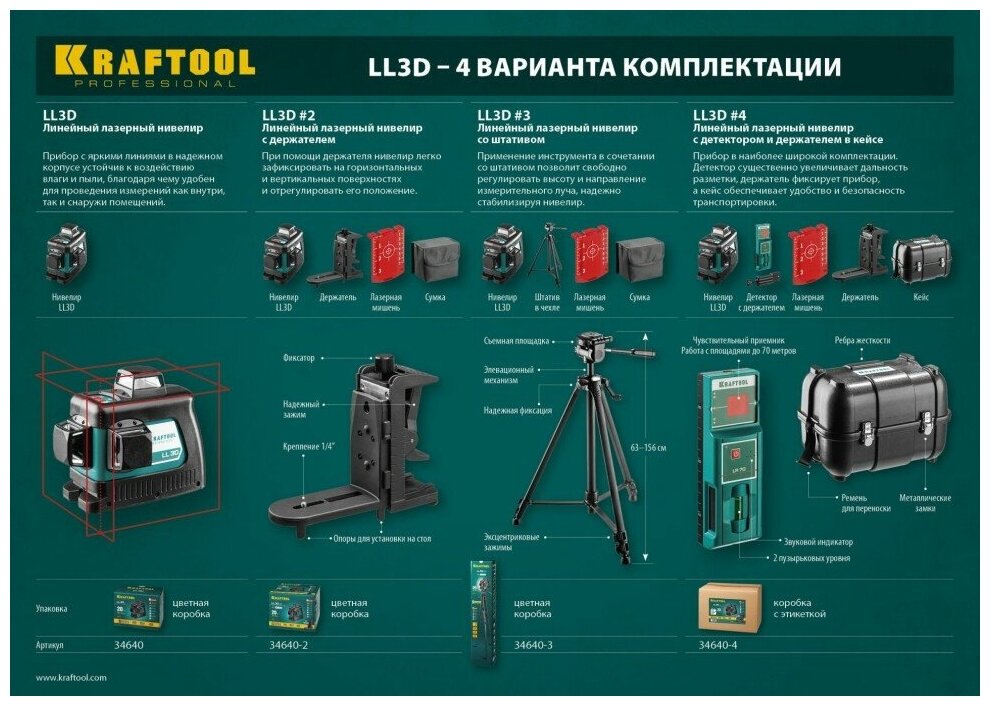 KRAFTOOL линейный лазерный нивелир со штативом LL3D 3 34640-3 Professional