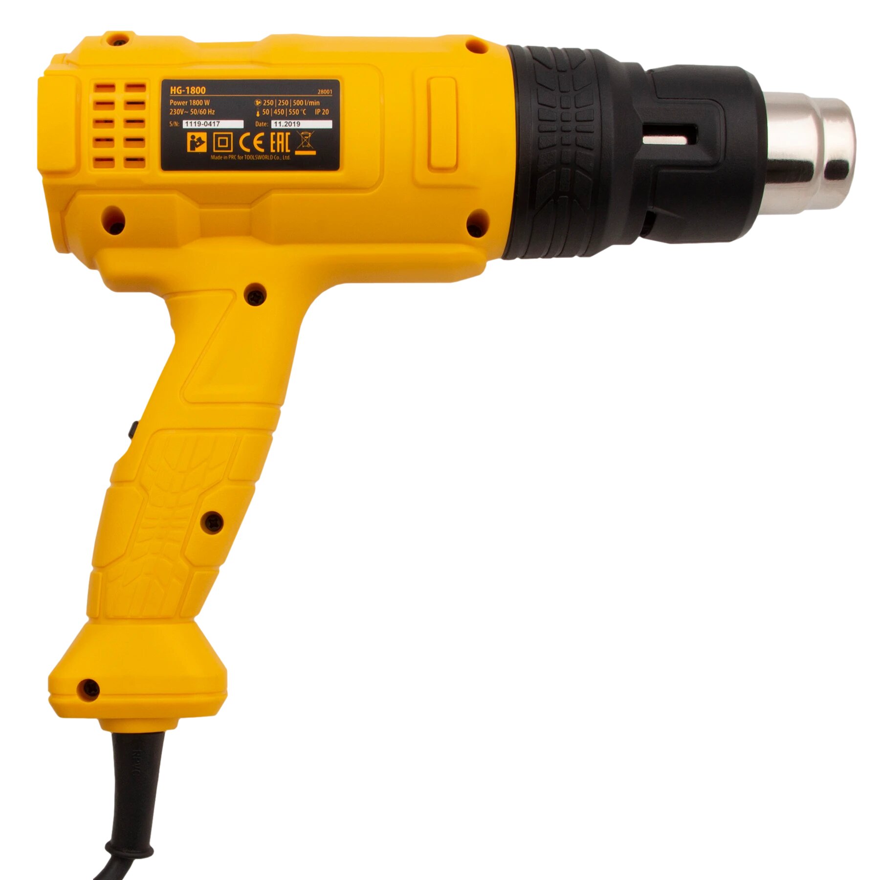 Строительный фен Denzel HG-1800, 1800 Вт желтый информация: