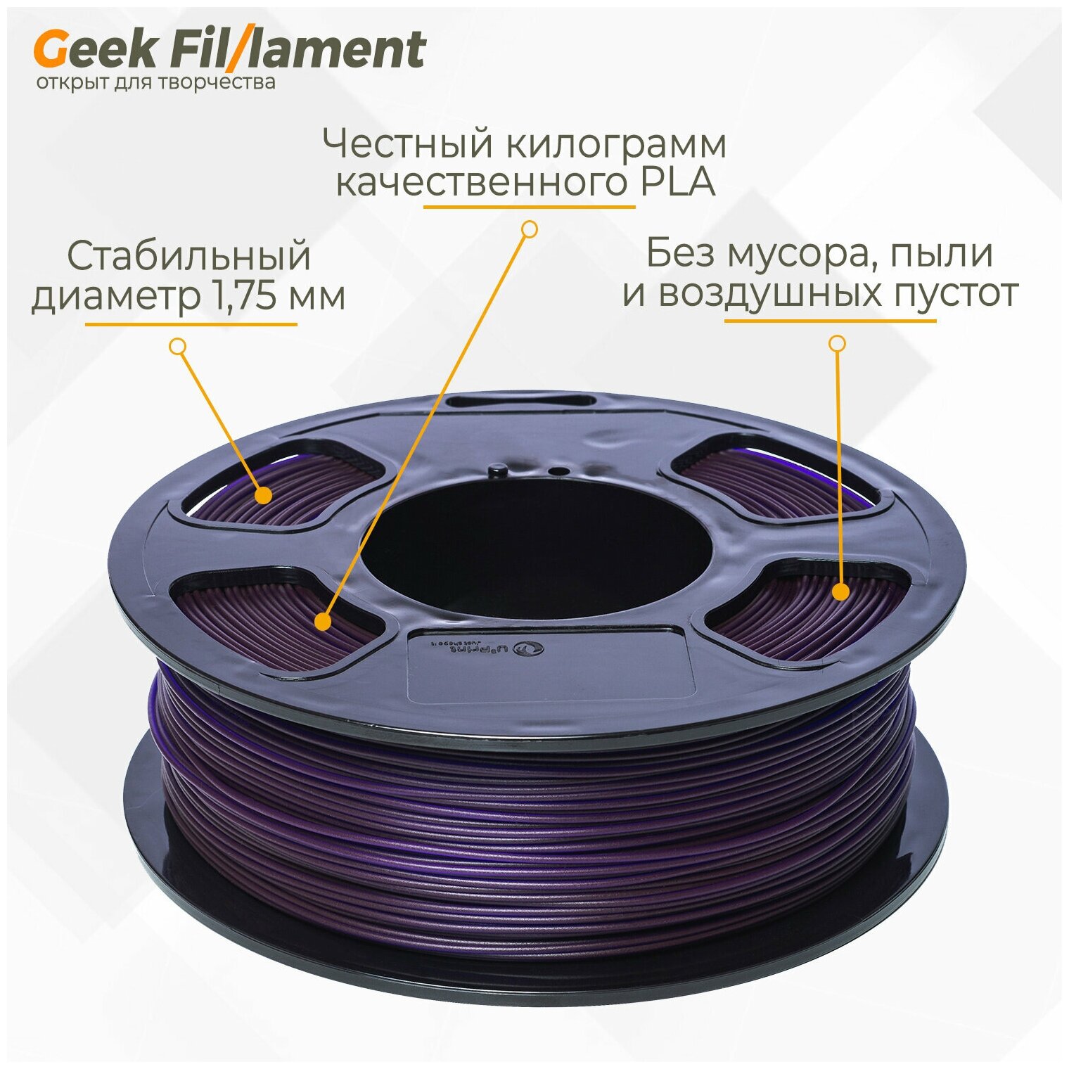 Пластик для 3D принтера PLA Geekfilament 1.75мм, 1 кг фиолетовый (Purple) информация: