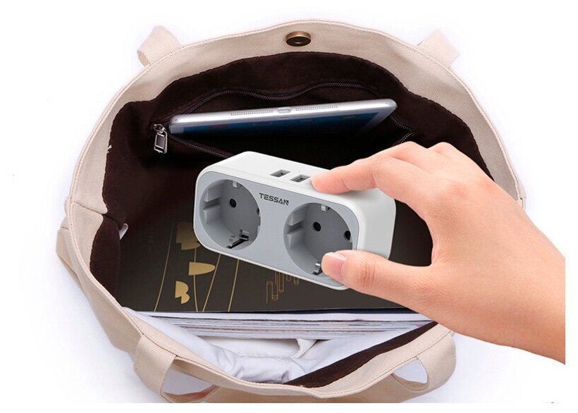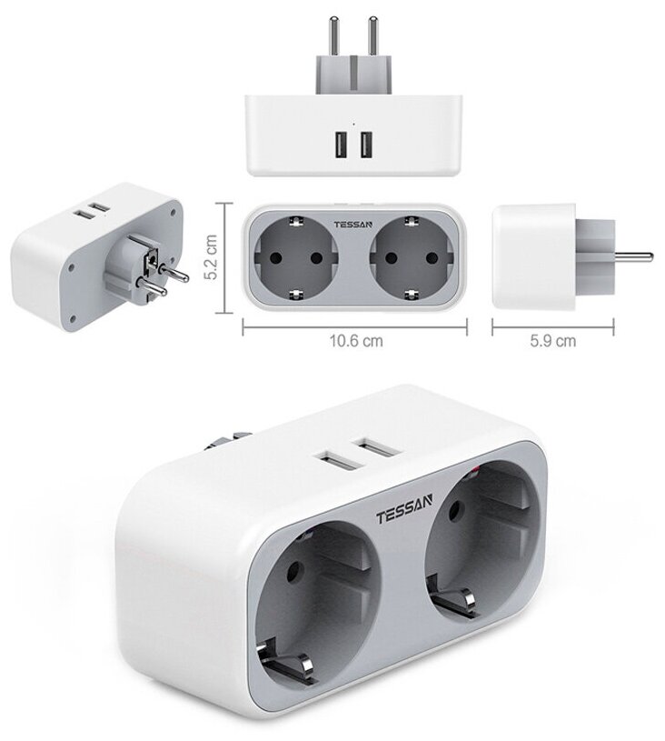 TESSAN Тессан сетевые фильтры TS-321-DE White Сетевой фильтр с 2 розетками 220В и 2 USB портами