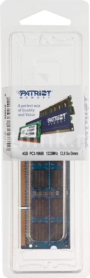 Память SODIMM DDR3 PC3-10600 Patriot PSD34G13332S, 4Гб, 1.5 В информация: