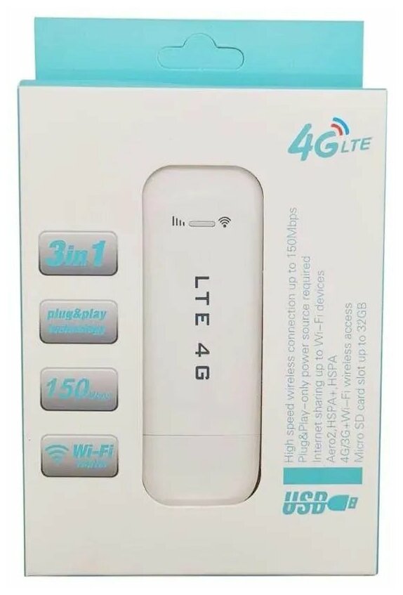 Модем-роутер Wi-Fi 4G LTE / Поддержка любых операторов / принимает до 10 абонентов / скорость интернета до 150 мб информация: