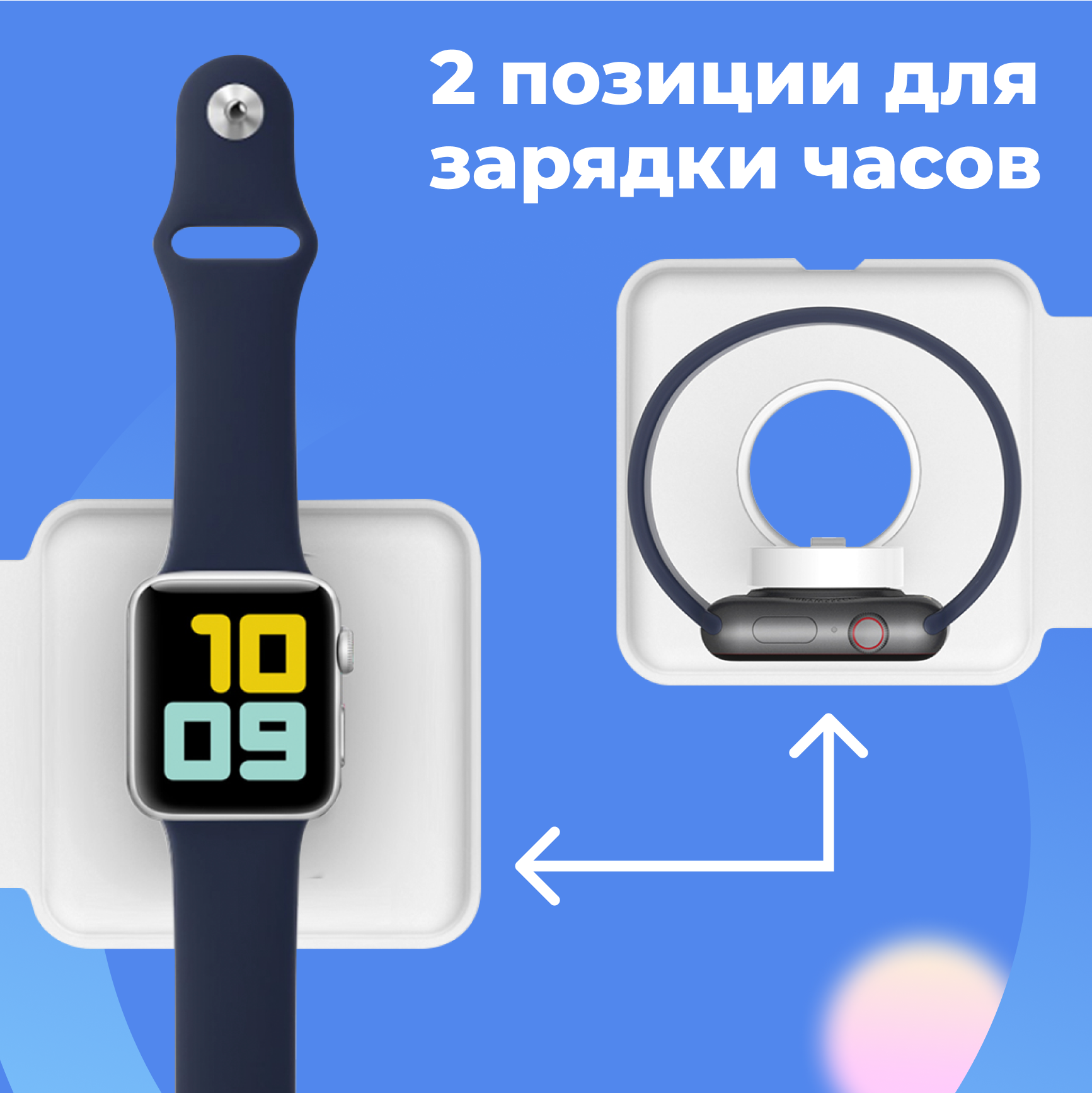 Белая беспроводная док станция 2 в 1 с функцией быстрой зарядки Qi для Apple iPhone, AirPods, Apple Watch, Samsung Galaxy, Huawei, Xiaomi Airdots информация: