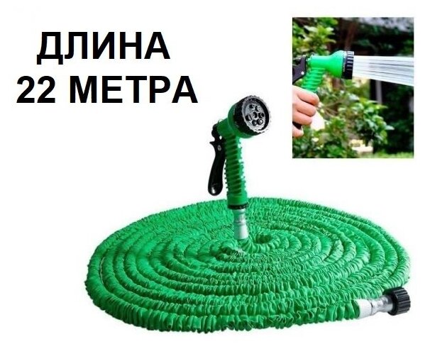 Шланг садовый для полива растягивающийся увеличивающийся лейка-распылитель и насадка быстросъем, пистолет 22 метра