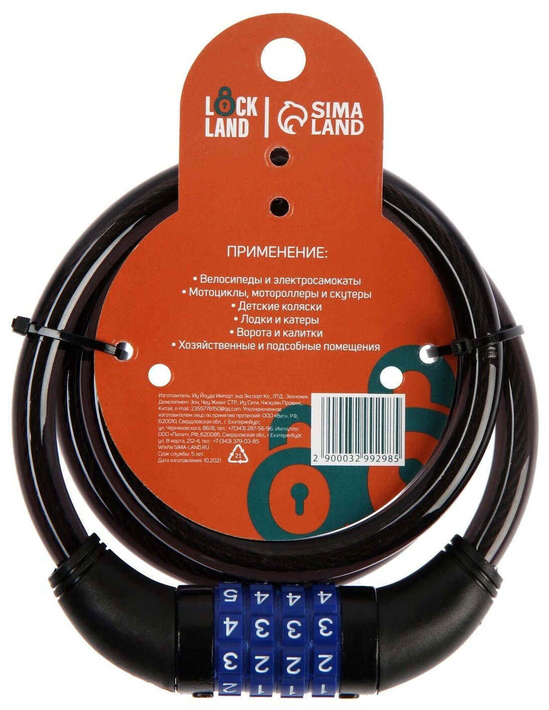Замок навесной велосипедный LOCKLAND, кодовый, 12 х 1000 мм информация: