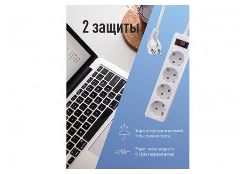 Сетевой фильтр Космос 1 5 м 4 розеток пвс 3х0 75мм2 белый информация: