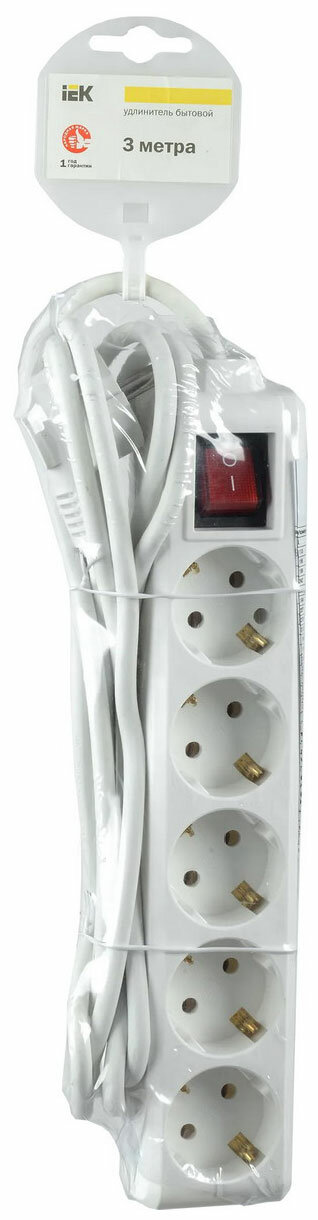Отзывы на Удлинитель IEK У05К-выкл. 5 мест 2P PE/3метра 3х1мм2 16А/250В WYP10-16-05-03-ZK-N