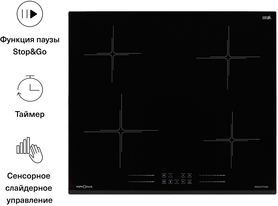 Варочная поверхность KRONA FARBE 60 BL встраиваемая индукционная черная информация: