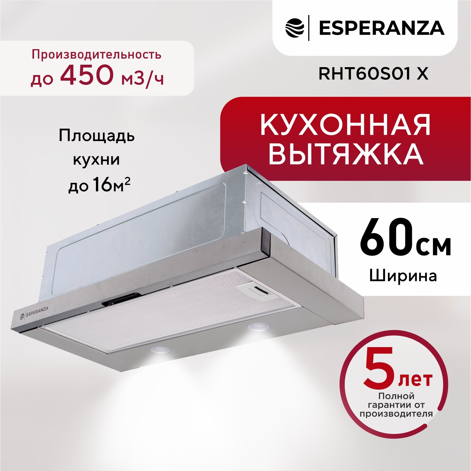 10 цен на Вытяжка встраиваемая ESPERANZA RHT60S01 X