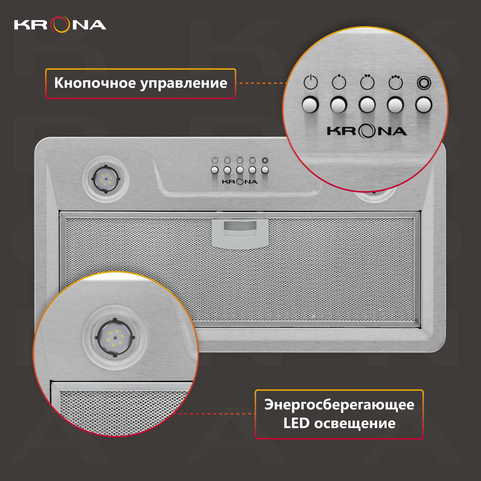 Кухонная вытяжка встраиваемая KRONA Kamilla 500 INOX