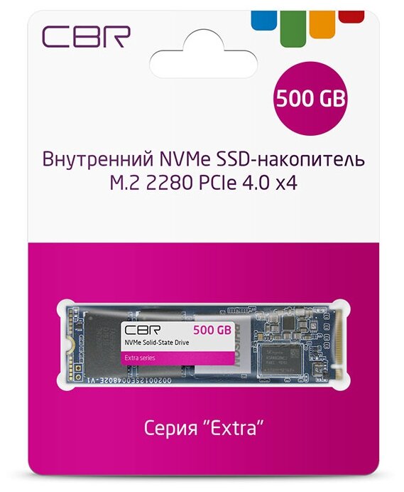 CBR Ssd-500gb-m.2-ex22, Внутренний SSD-накопитель, серия "Extra", 500 GB, M.2 2280, PCIe 4.0 x4, NVM
