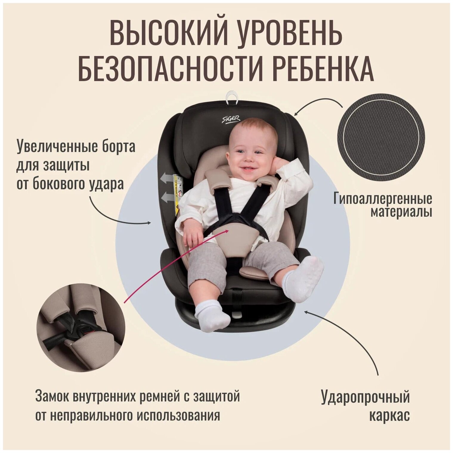 Автокресло детское поворотное с рождения до 12 лет / Isofix / 0+/1/2/3/до 36 кг 0-36кг / 0-12лет, Siger Престиж , мокко 9 290 ₽
