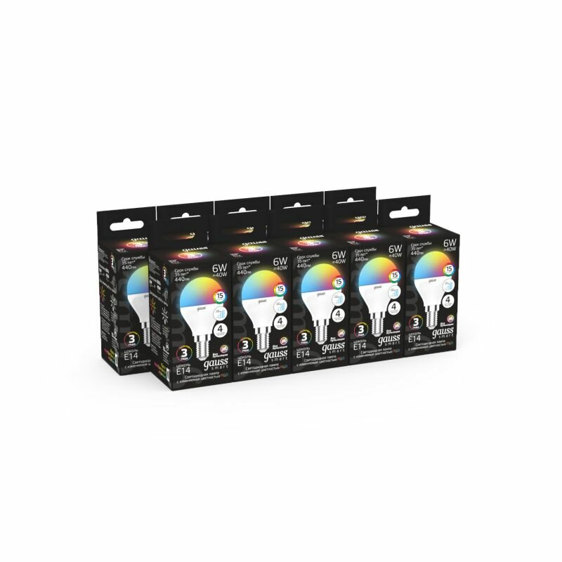 Лампа Gauss Smart LED, шар, G45, 6W, E14, RGBW+dim, 1/10/100 105101406