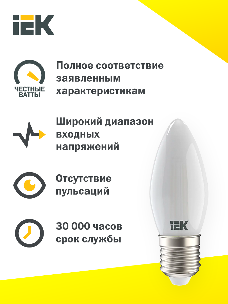 Отзывы на Лампа IEK серия 360, LED, C35, свеча, матовая, 7вт, 230В, 4000К, E27 LLF-C35-7-230-40-E27-FR