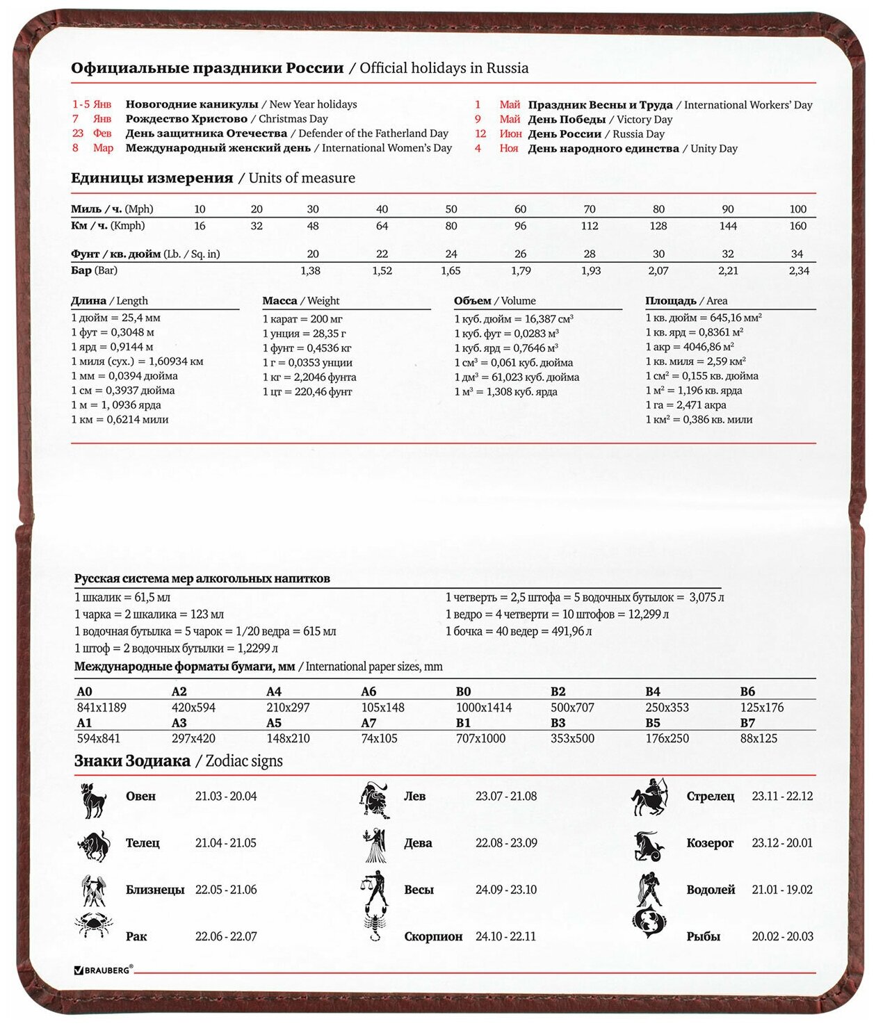 | Особенности | закругленные углы / ляссе / прошивка по периметру обложки / справочная информация |