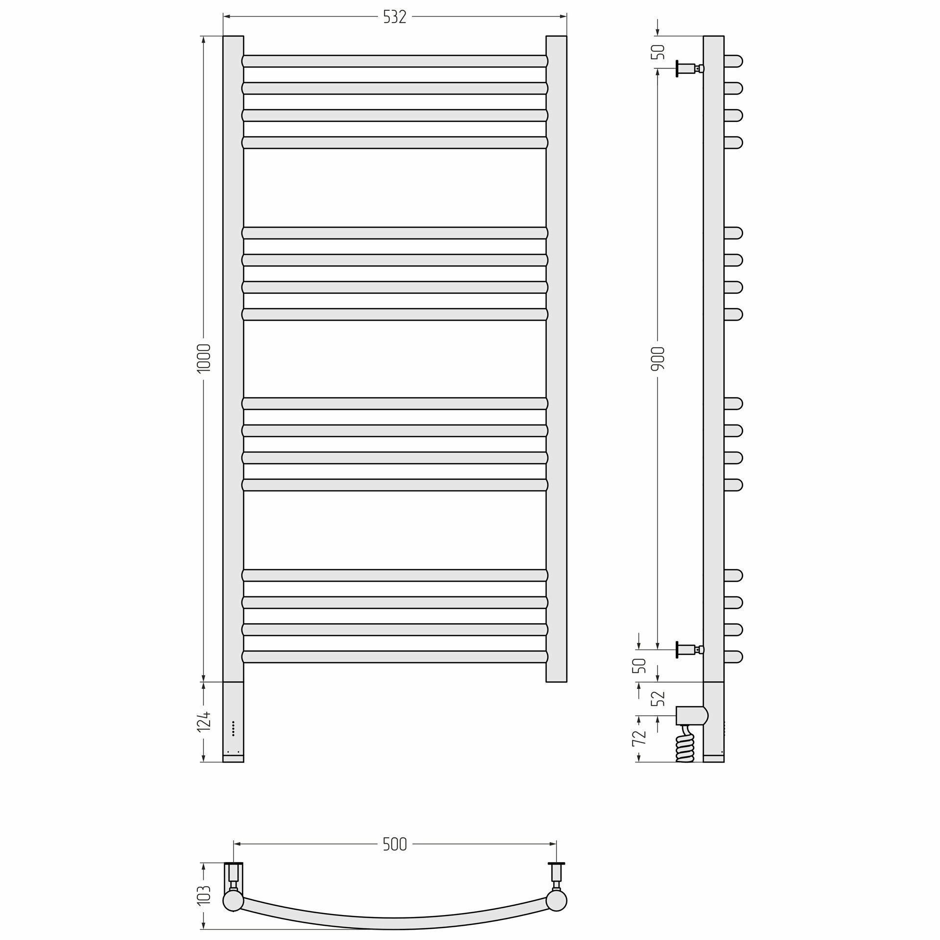 Полотенцесушитель электрический Сунержа Богема 3.0 выгнутая 1000х500 МЭМ левый Белый информация: