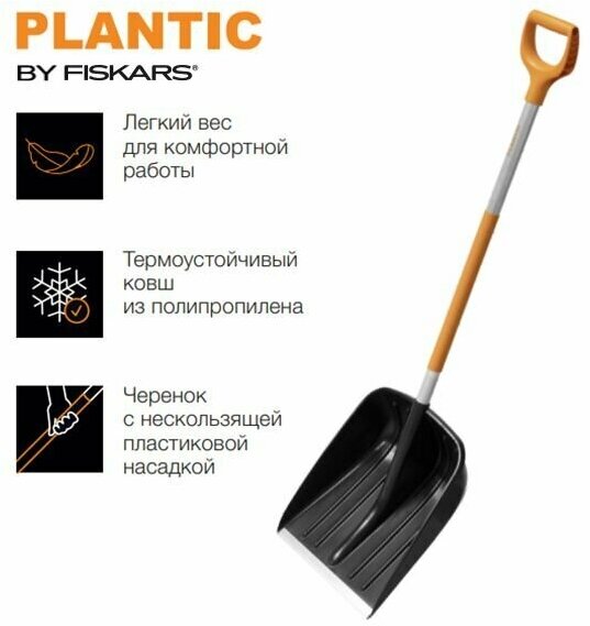 | Дополнительная информация | Эргономичная D-образная ручка для удобного захвата, Выпуклые ребра на ковше не позволяют мокрому снегу прилипать |