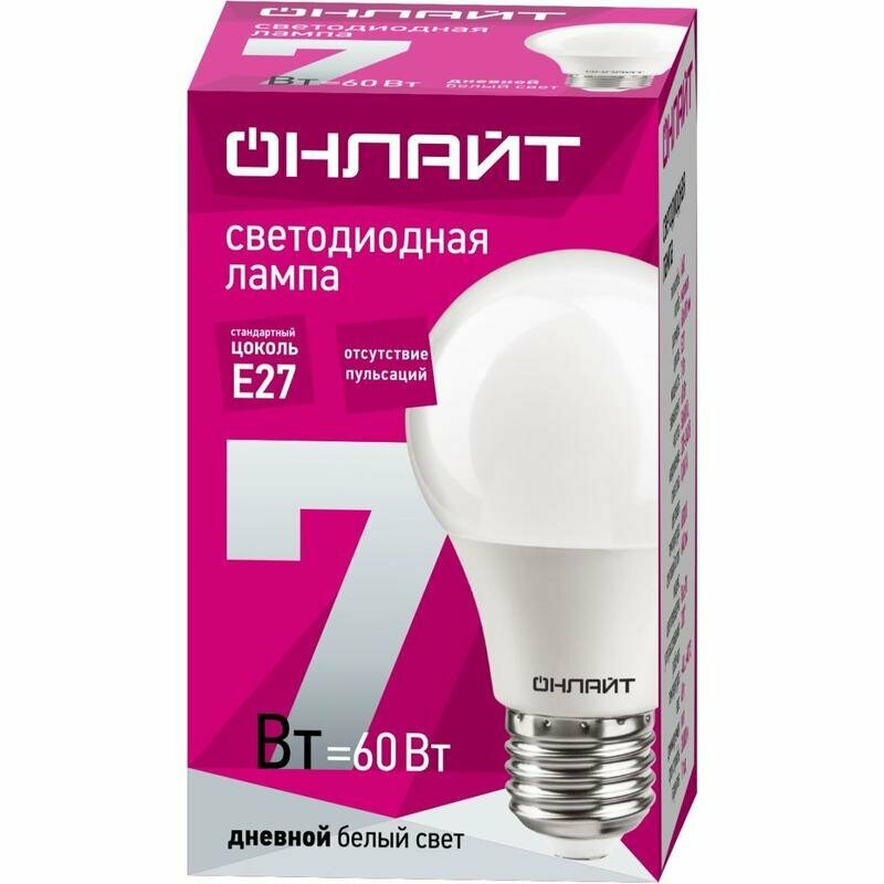 Светодиодная лампа груша онлайт 61 139 OLL-A60-7-230-6.5K-E27, цена за 1 шт. информация: