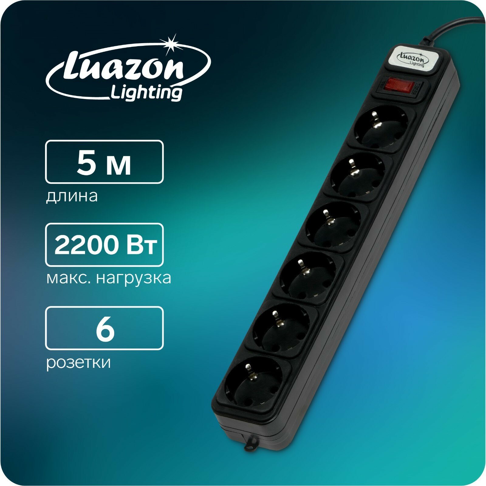 Сетевой фильтр Luazon Lighting 4457529, 6 розеток, 5 м, с/з, 10А / 2200 Вт