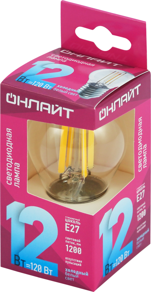 Лампа светодиодная онлайт 80885, E27, G45, 12 Вт, 4000 К информация: