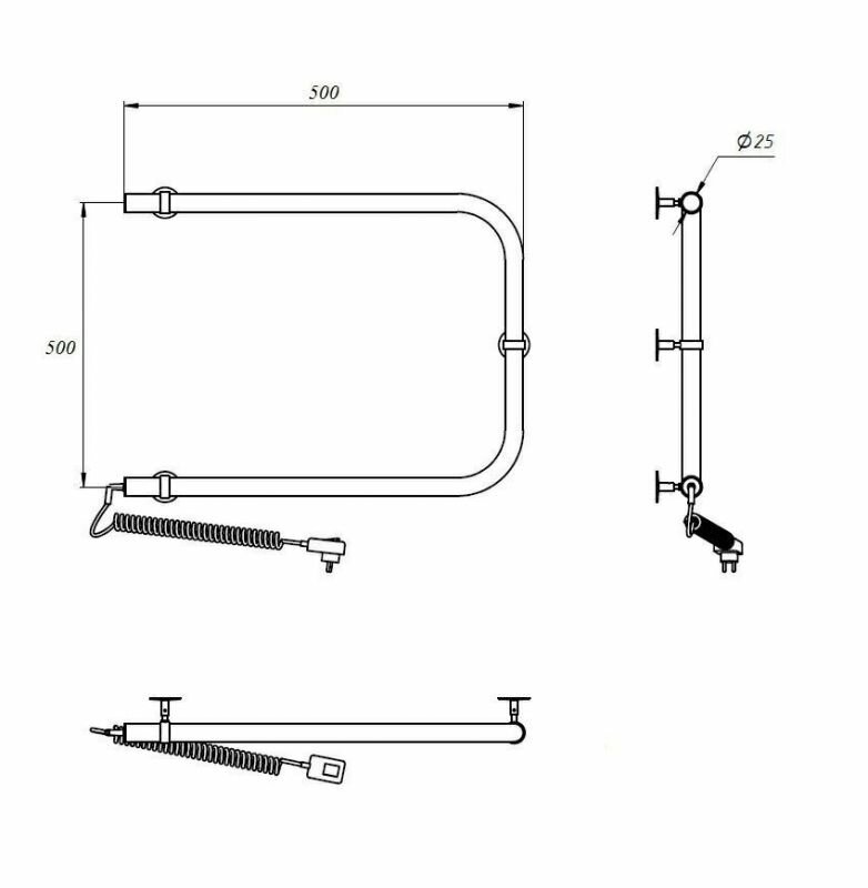П-образный полотенцесушитель электрический П-образный 500х500 мм, хром, TermoSmart / ТермоСмарт информация: