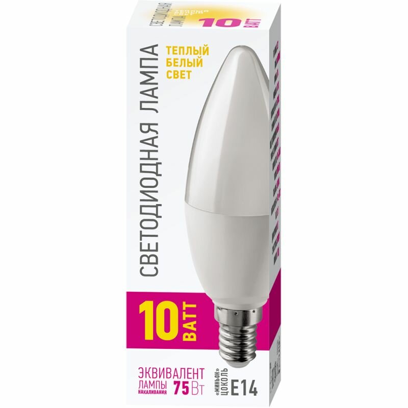 (20 шт.) Светодиодная лампочка онлайт промо свеча С37 E14 10W (700lm) 2700K 2K 99x37 OLL-C37-10-230-2.7K-E14-PROMO, 82914 . Цоколь E14 2 064 ₽