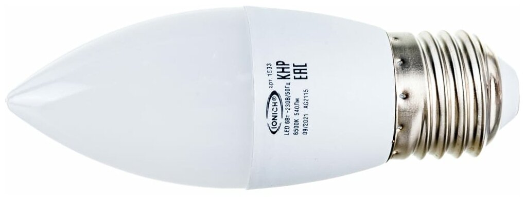 Отзывы на IONICH свеча C37 E27 6W(540lm) 6500К 6K 37x100 матов./пластик/алюм ILED-SMD2835-C37 1533 (арт. 773257)