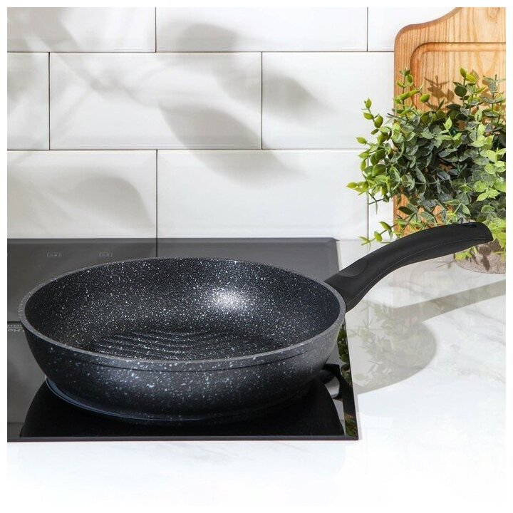 Сковорода-гриль 26 см с ручкой, антипригарное покрытие, тёмный мрамор KUKMARA 4278880 .