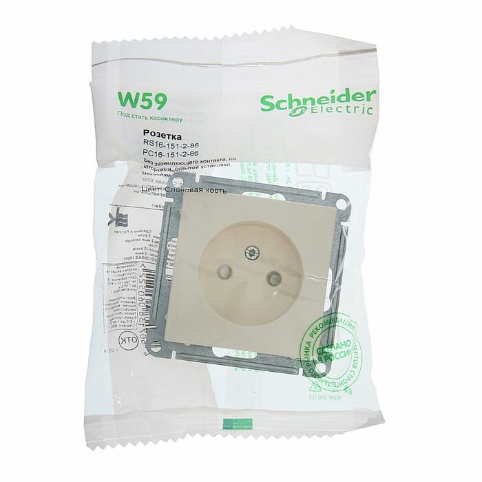 Schneider Electric Schneider Electric Розетка 1-м СП W59 16А IP20 без заземл. защ. шторки механизм сл. кость SchE RS16-151-2-86