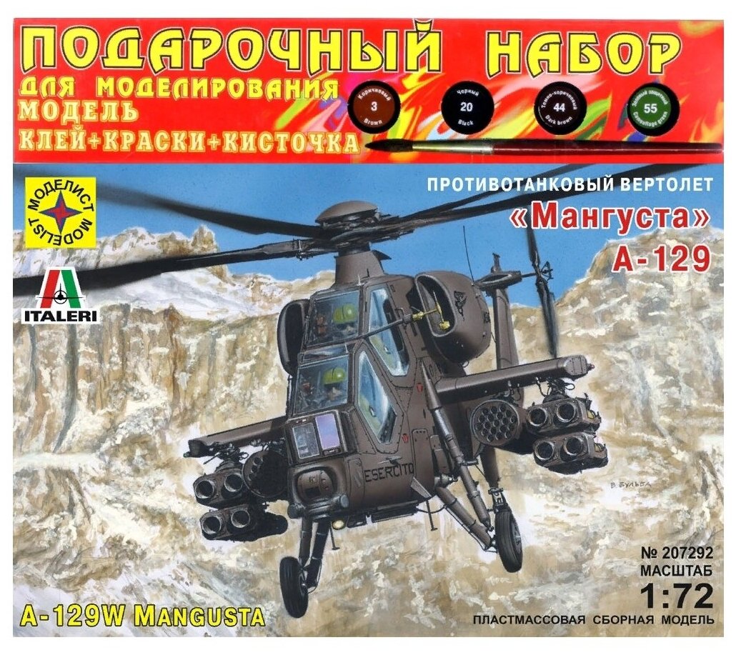 Сборная модель Моделист Противотанковый вертолет А-129 Мангуста, 1/72, Подарочный набор ПН207292