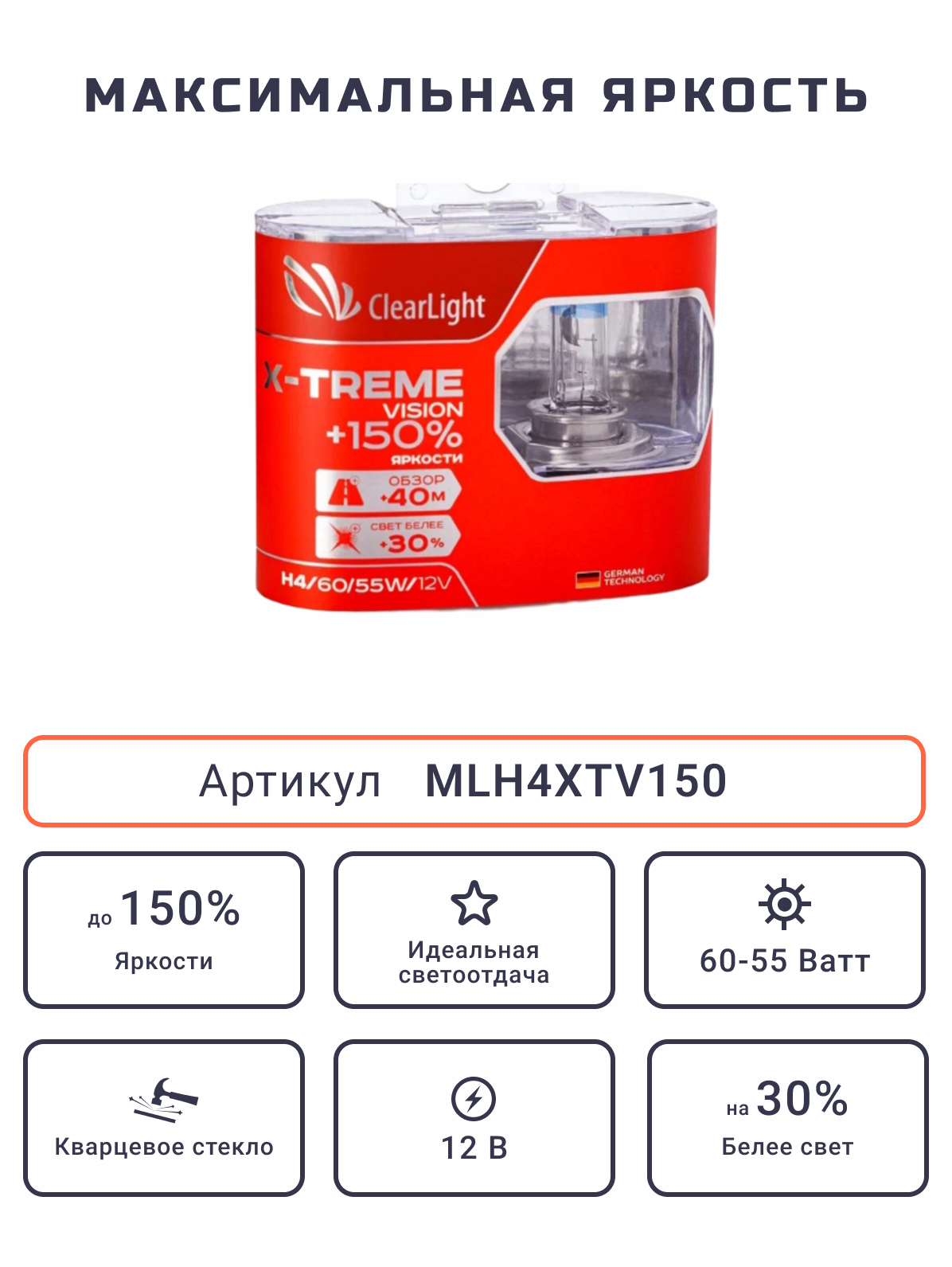 Отзывы на Лампа 12v H4 60/55w +150% Clearlight X-Treme Vision 2 Шт. Duobox Mlh4xtv150 ClearLight арт. MLH4XTV150