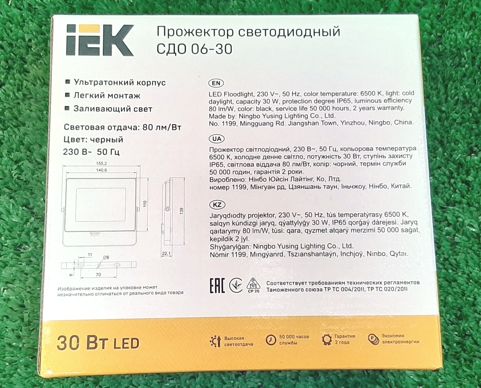 Прожектор светодиод СДО-6 30Вт 6500К 2400Лм черный IP65 IEK информация: