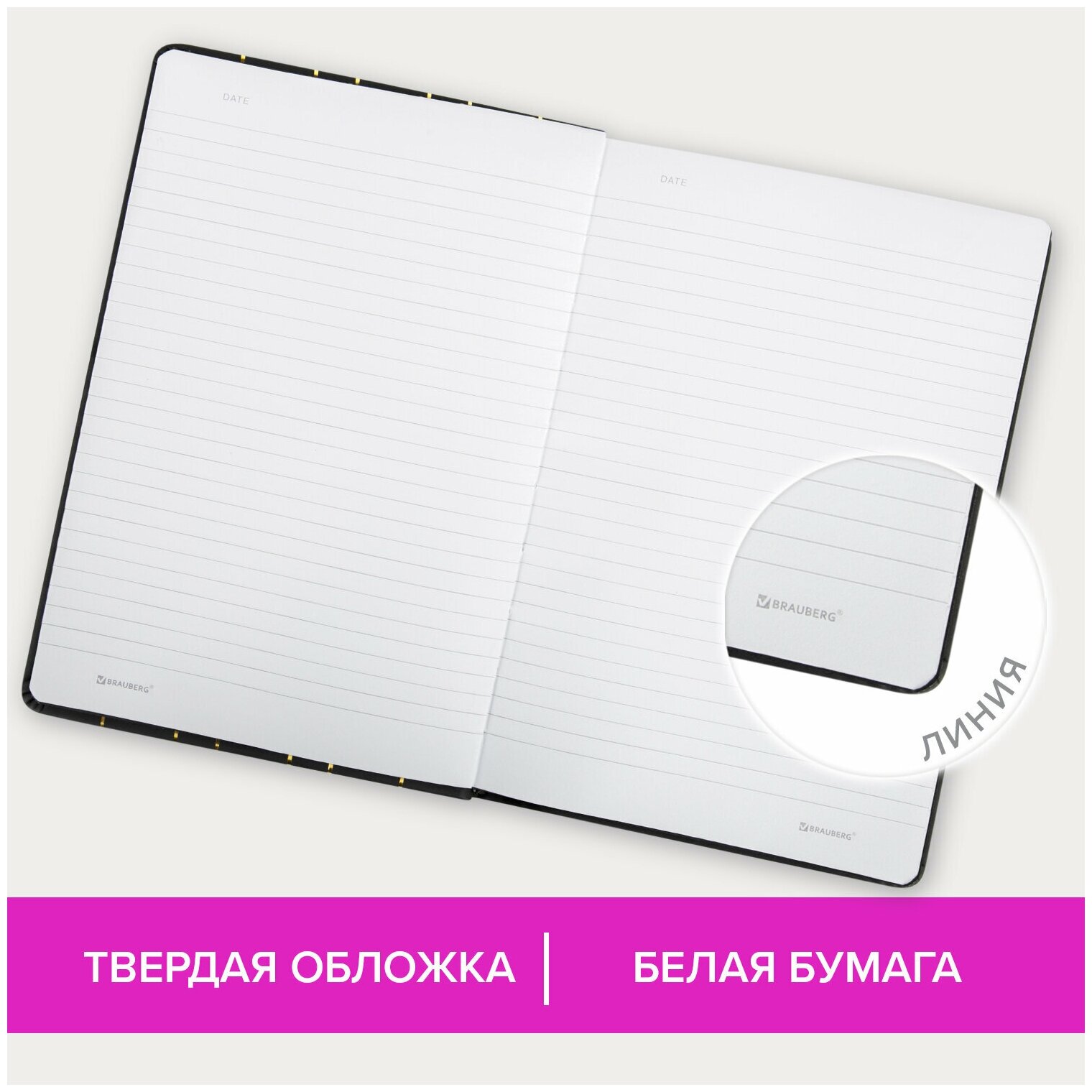 Блокнот А5 135х205мм BRAUBERG TOUCH под кожу, 80л, линия, черный, 113409 информация: