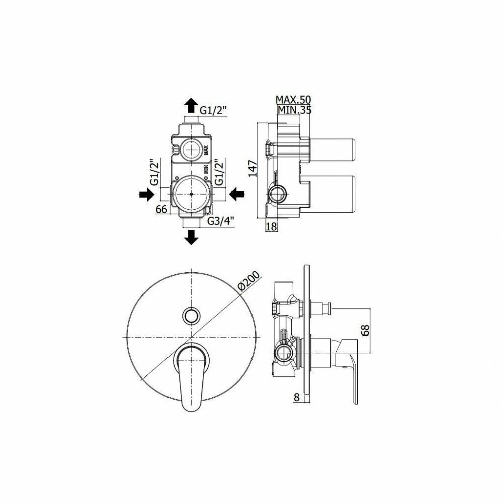 | Комплектация | смеситель на 2 выхода с накладкой из латуни, скрытая монтажная часть |