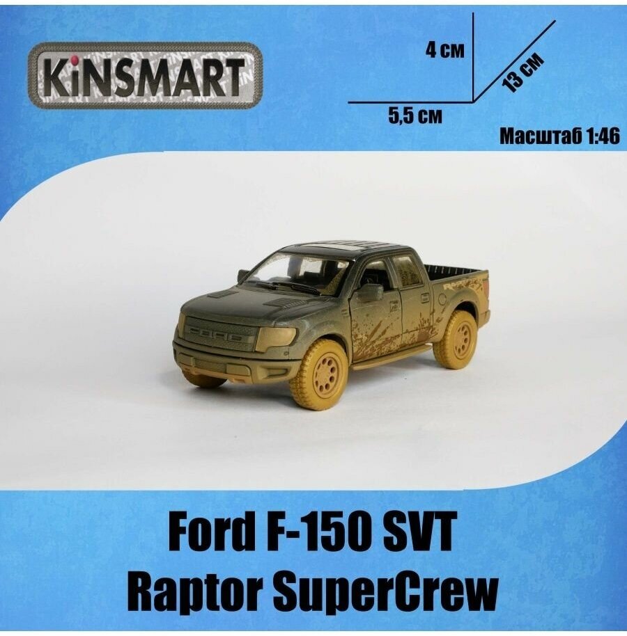 10 цен на Машинка металлическая Kinsmart 1:46 2013 Ford F-150 SVT Raptor (Форд Раптор) 5365DYKT инерционная, двери и багажник открываются / Черный с эффектом грязи