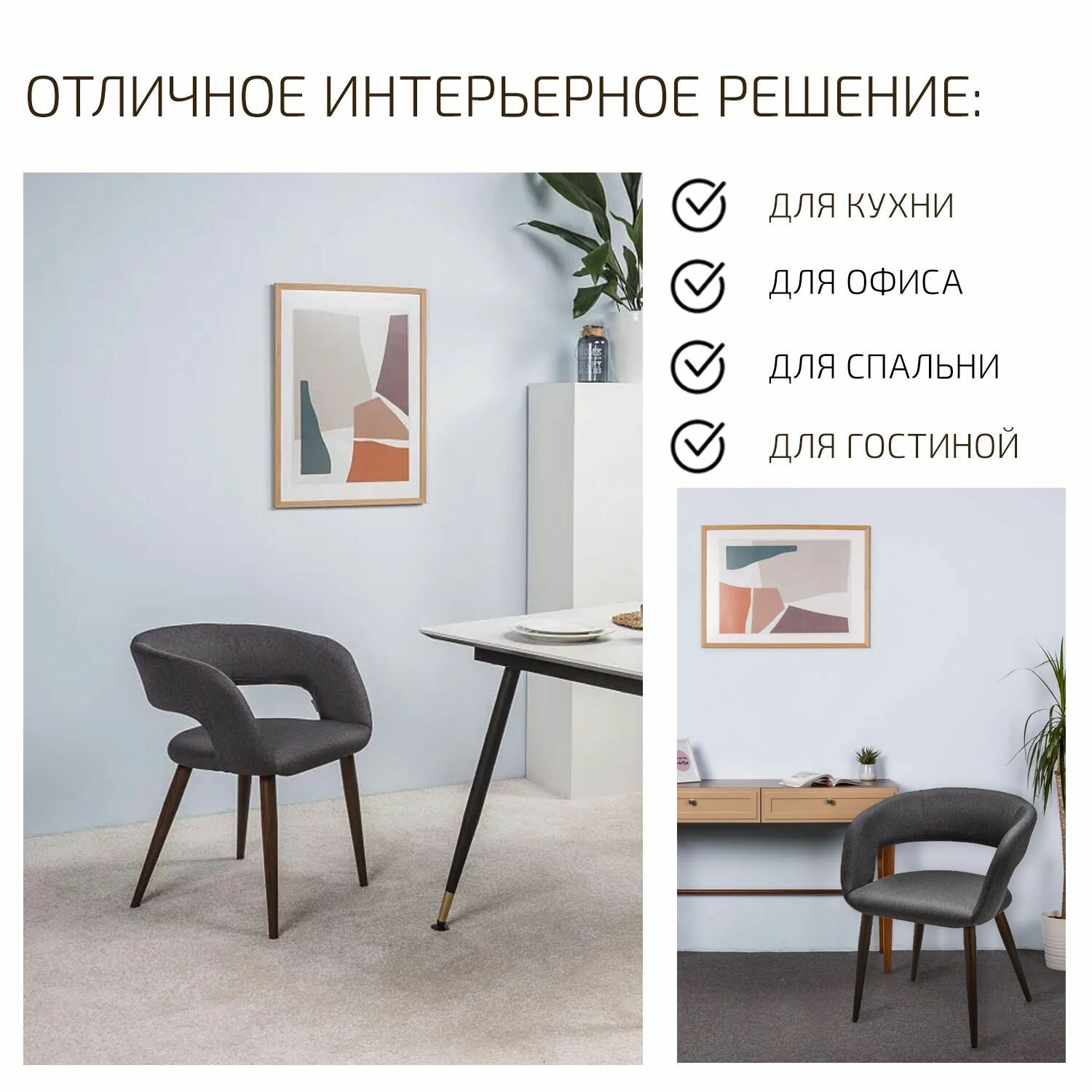 Стул кухонный мягкий со спинкой кресло Hugs