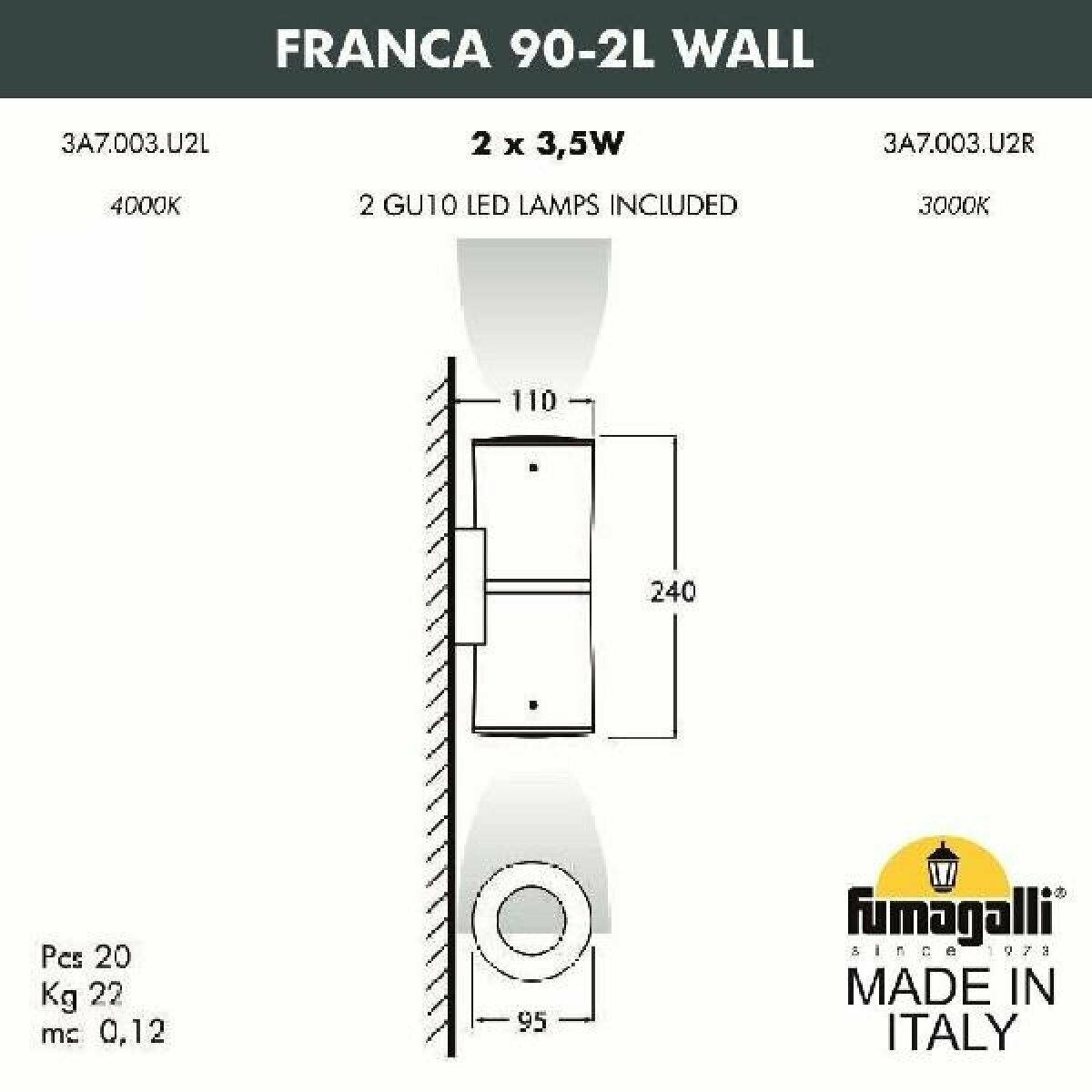 Архитектурная подсветка светодиодная Franca IP55 Fumagalli 90 3A7.003.000.AXU2L 10 358 ₽