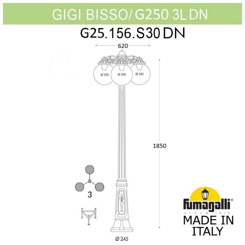 Светильник уличный наземный FUMAGALLI GLOBE 250 G25.156.S30.WYE27DN Fumagalli информация: