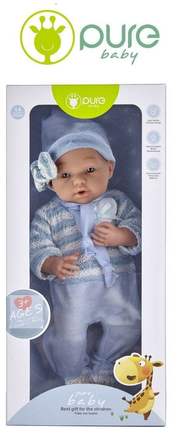 Пупс JUNFA Pure Baby 35см в голубом комбинезоне, шапочке с шарфом, в коробке WJ-B9970 информация: